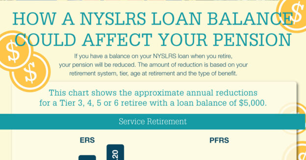 If you have an outstanding NYSLRS loan balance when you retire, it will reduce your pension. The amount of the reduction is based on: