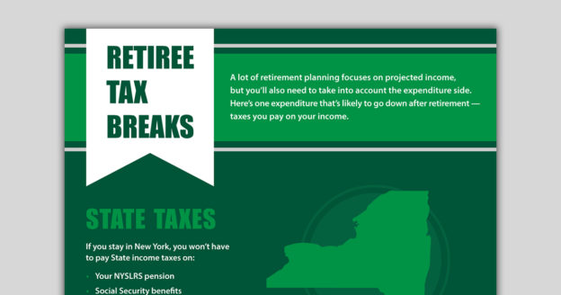 You may also get a tax break on any distributions from retirement savings, such as deferred compensation, and benefits from a private-sector pension. Find out more on the Department of Taxation and Finance website.